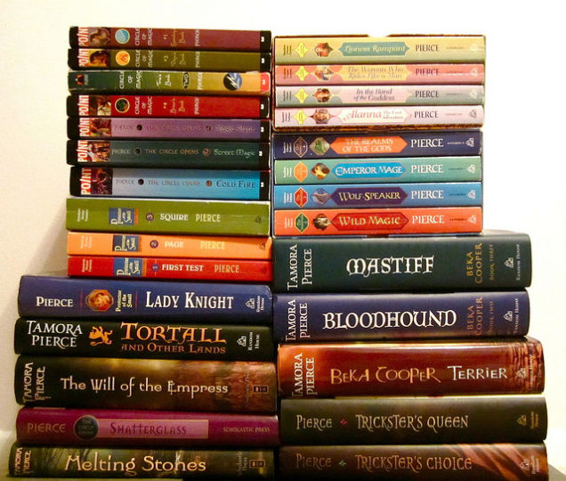 Tamora Pierce – I say Tamora Pierce in general because to pick out just one of her series would not only be impossible, it would be unrealistic. So many of Pierce’s series are intertwined with their use of the same world and similar characters. One series may be about one woman and another about her daughter. Each protagonist have their own adventures and issues to deal with, but they are all written with the same easy style and rich in-depth world. So much so that there was actually a reference book written about Pierce’s created world. It is not necessary to enjoy any of her novels but it is a great companion.